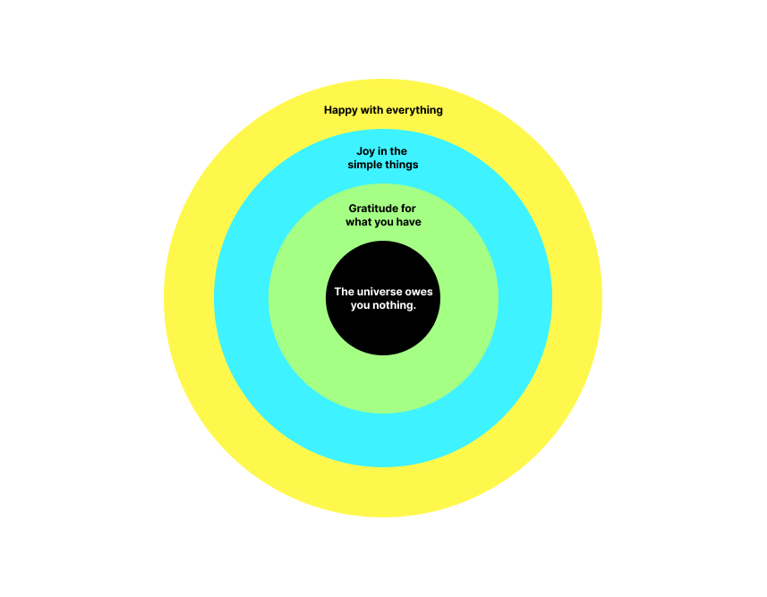 TL;DR: The universe owes you nothing, so be grateful for any good thing you have. From gratitude stems joy.